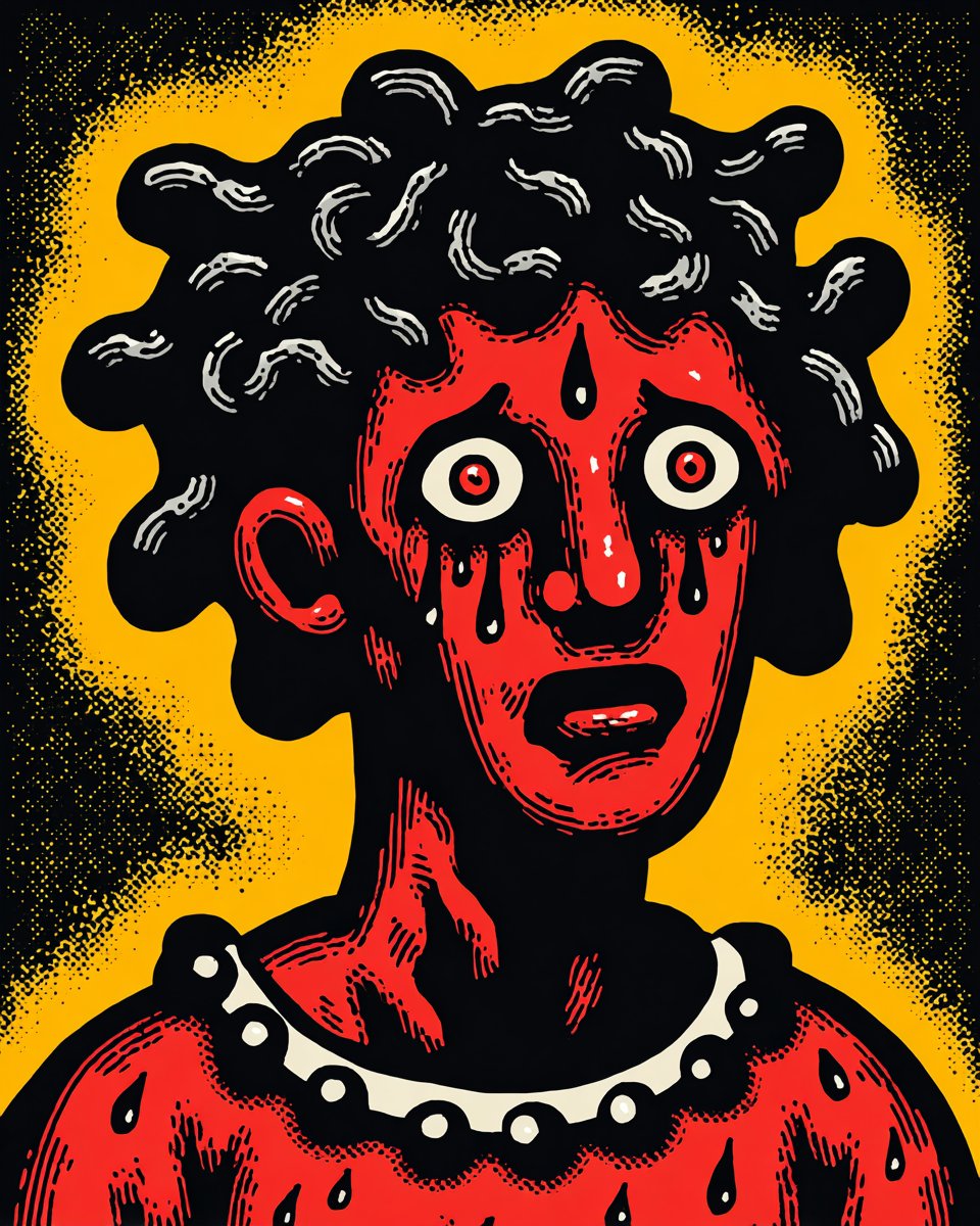 This AI image generation style features bold, colorful illustrations reminiscent of pop art, characterized by playful characters and strong graphic elements that create a dynamic visual impact.